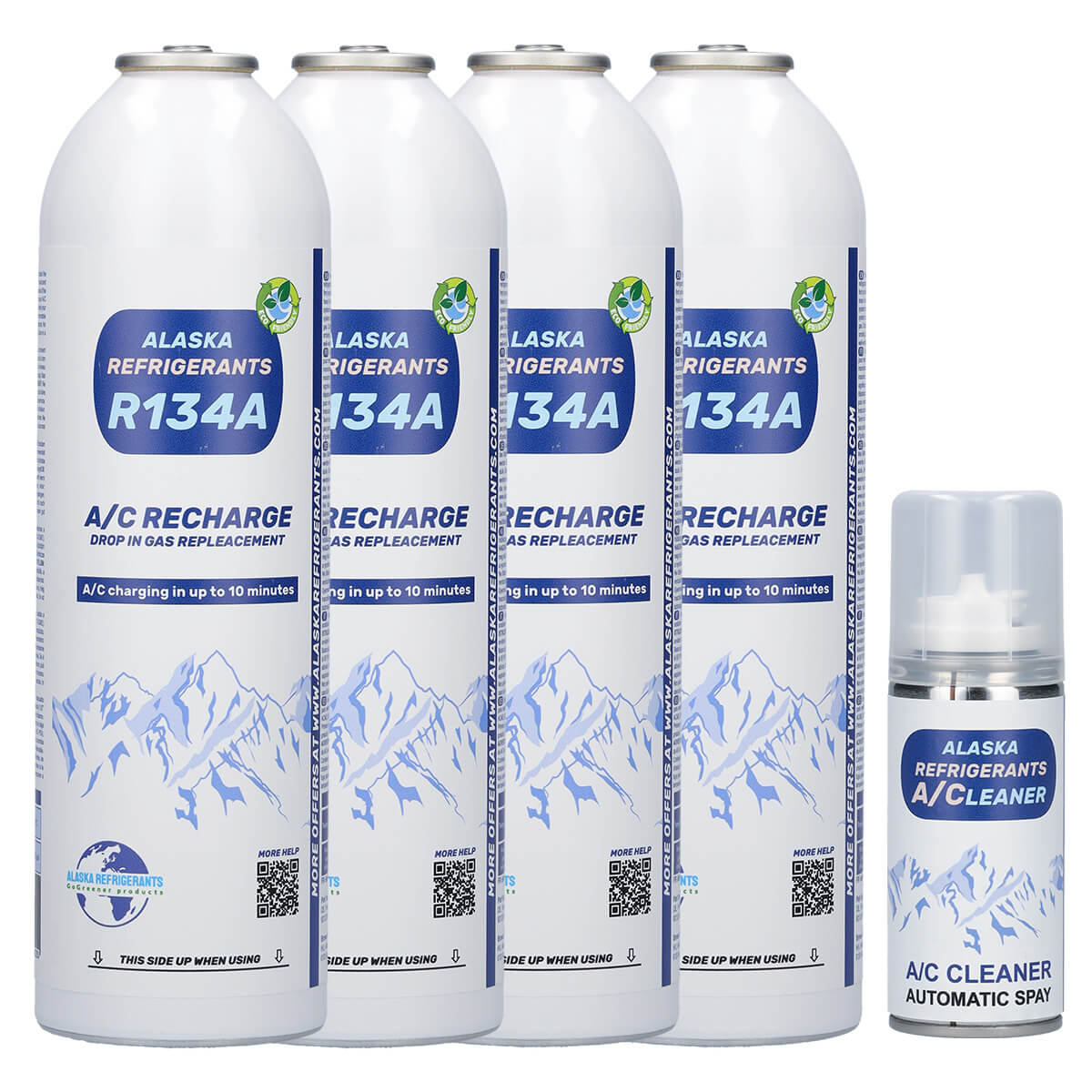 4 x Alaska Refrigerants R134a helyettesítő klímagáz járművekhez (Ajándék klímarendszer tisztító spray)